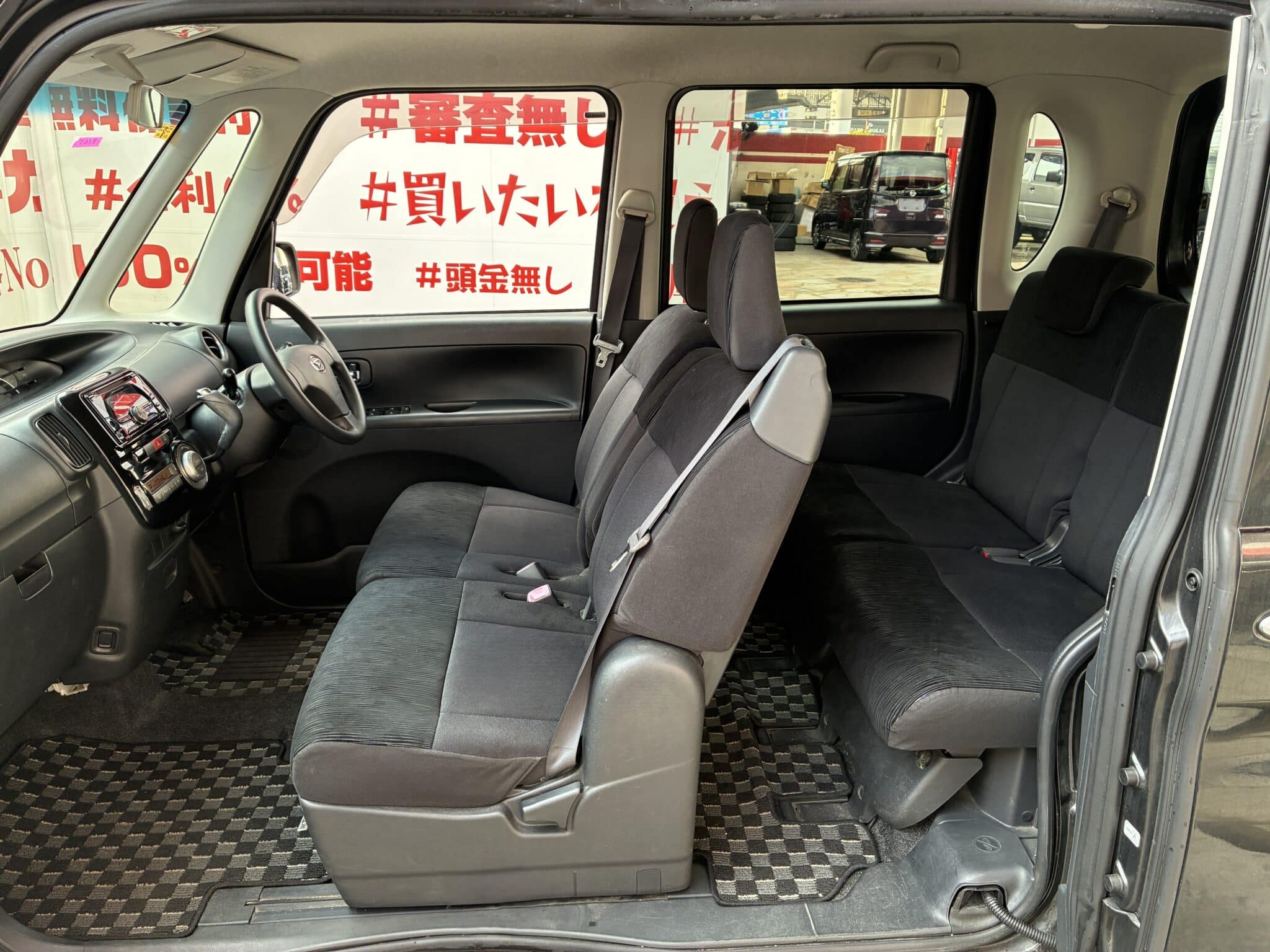 ✨パワースライドドア・ブラック内装・14インチAW装備✨社外オーディオデッキ🎶夜間走行も明るく安心HIDヘッドライト&フォグライト🌟乗り降り自由のセンターピラーレス🚪後席は折畳んでフラットにできます💺納車時新品タイヤ装着🌈車検2年付🌈