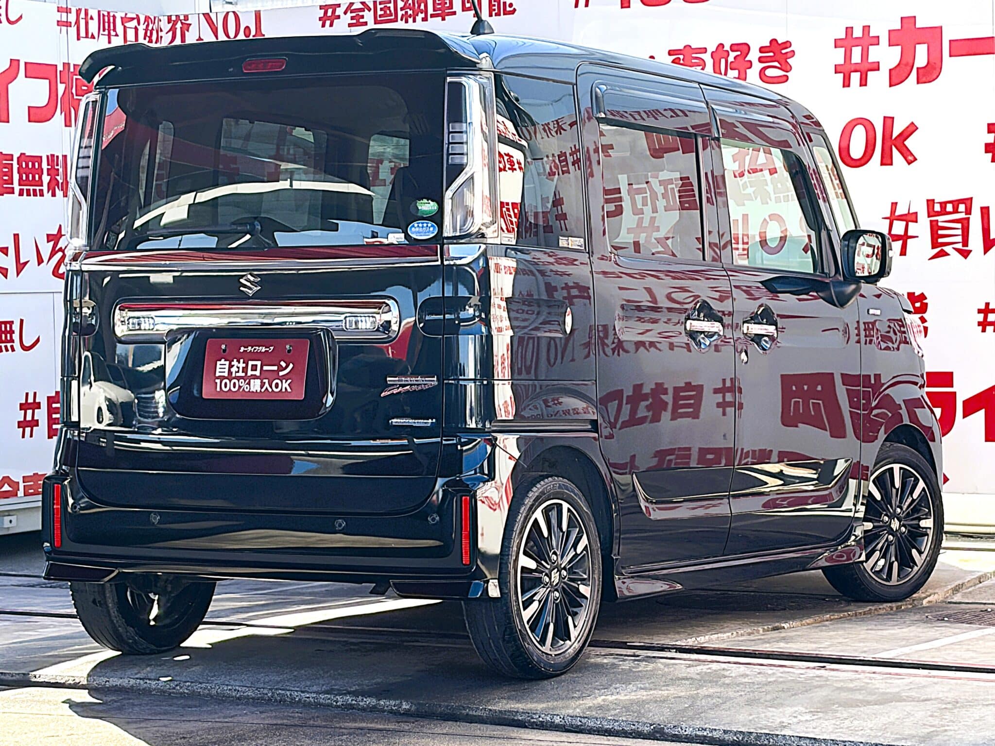 人気のスペーシアカスタム入庫致しました✨装備も充実しており初心者の方でも安心して乗れる一台です❗