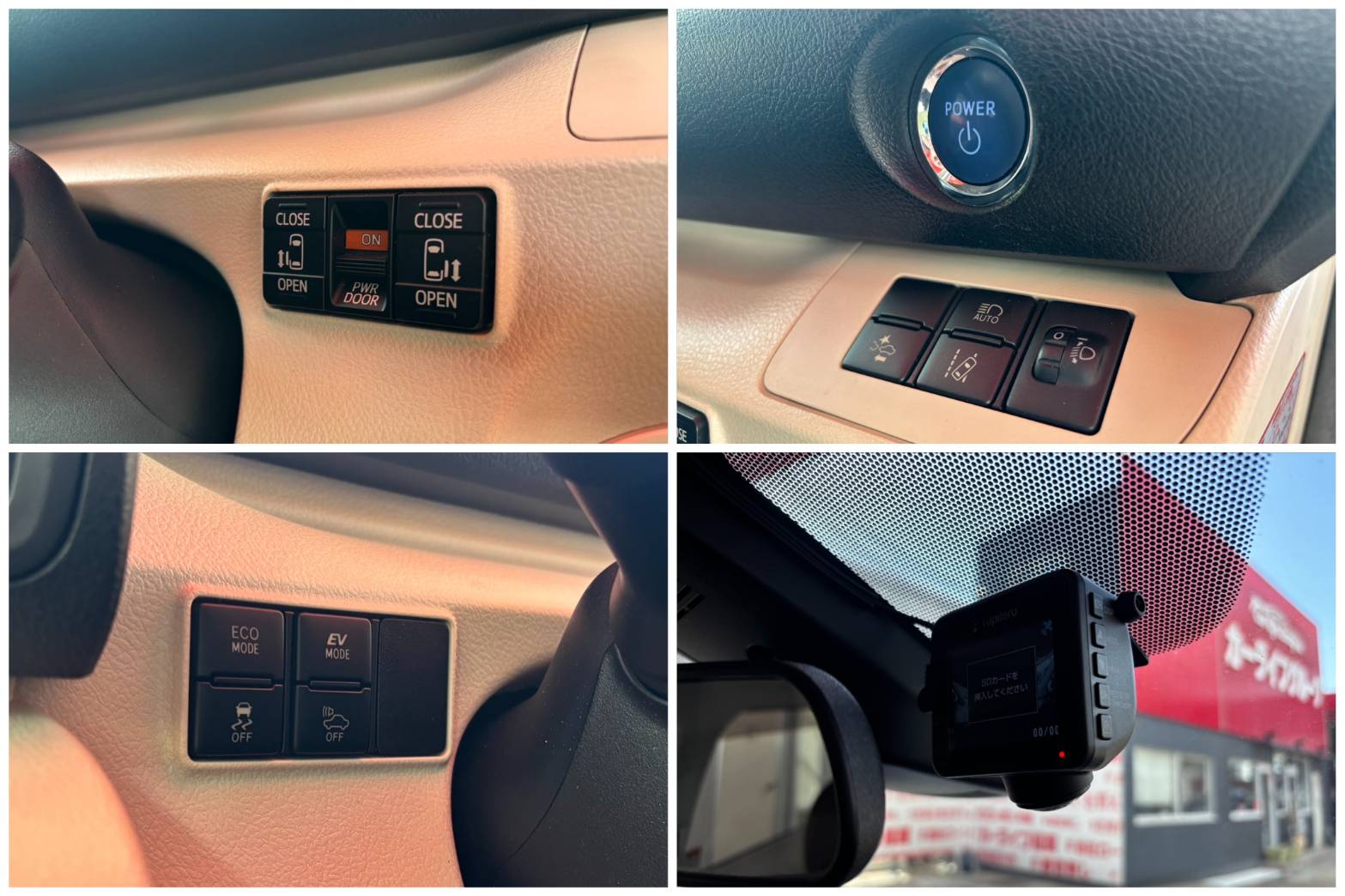 純正SDナビ CD DVD SD 地デジフルセグ Bluetooth ハンズフリー バックカメラ ビルトインETC 革巻ハンドル ステアリングスイッチ オートライト LEDヘッドライト オートハイビーム 車線逸脱警報 衝突被害軽減ブレーキ 横滑り防止装置 車両接近通報装置 ウィンカー付オート電動格納ドアミラー 両側パワースライドドア オートエアコン 3列シート ウォークスルー 7人乗り ドアバイザー スマートキー プッシュスタート ドライブレコーダー