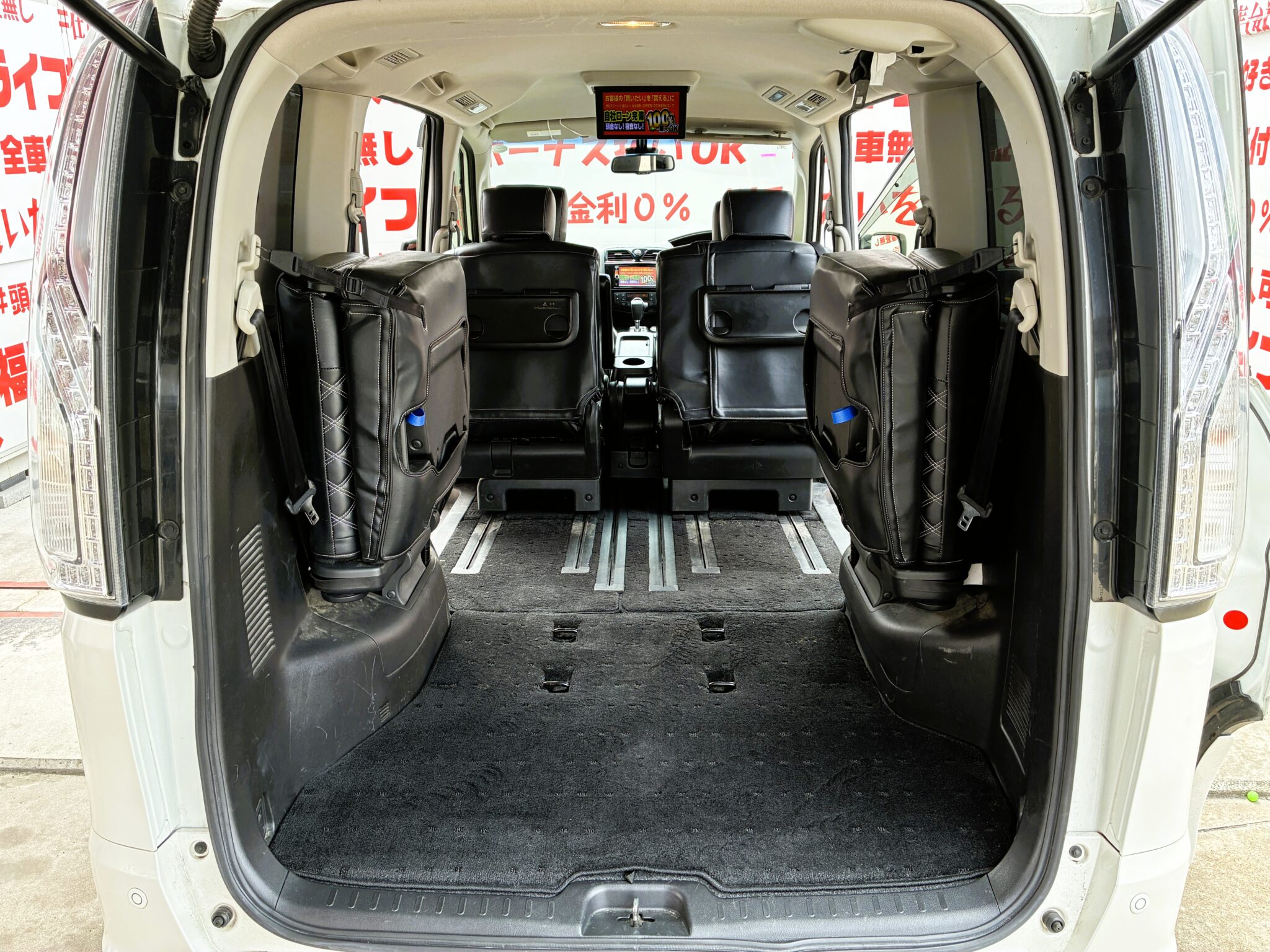純正SDナビ 地デジフルセグTV CD DVD SD Bluetooth AUX接続 バックカメラ サイドカメラ アラウンドビューモニター 前後障害物センサー 車線逸脱警報 衝突被害軽減ブレーキ クルーズコントロール ビルトインETC オートライト LEDヘッドライト Fフォグライト Wエアコン 純正フリップダウンモニター 両側パワースライドドア サイドバイザー ベレッツァシートカバー ウィンカー付き電動格納ミラー キーレス プッシュスタート スマートキー 3列シート 純正16インチAW