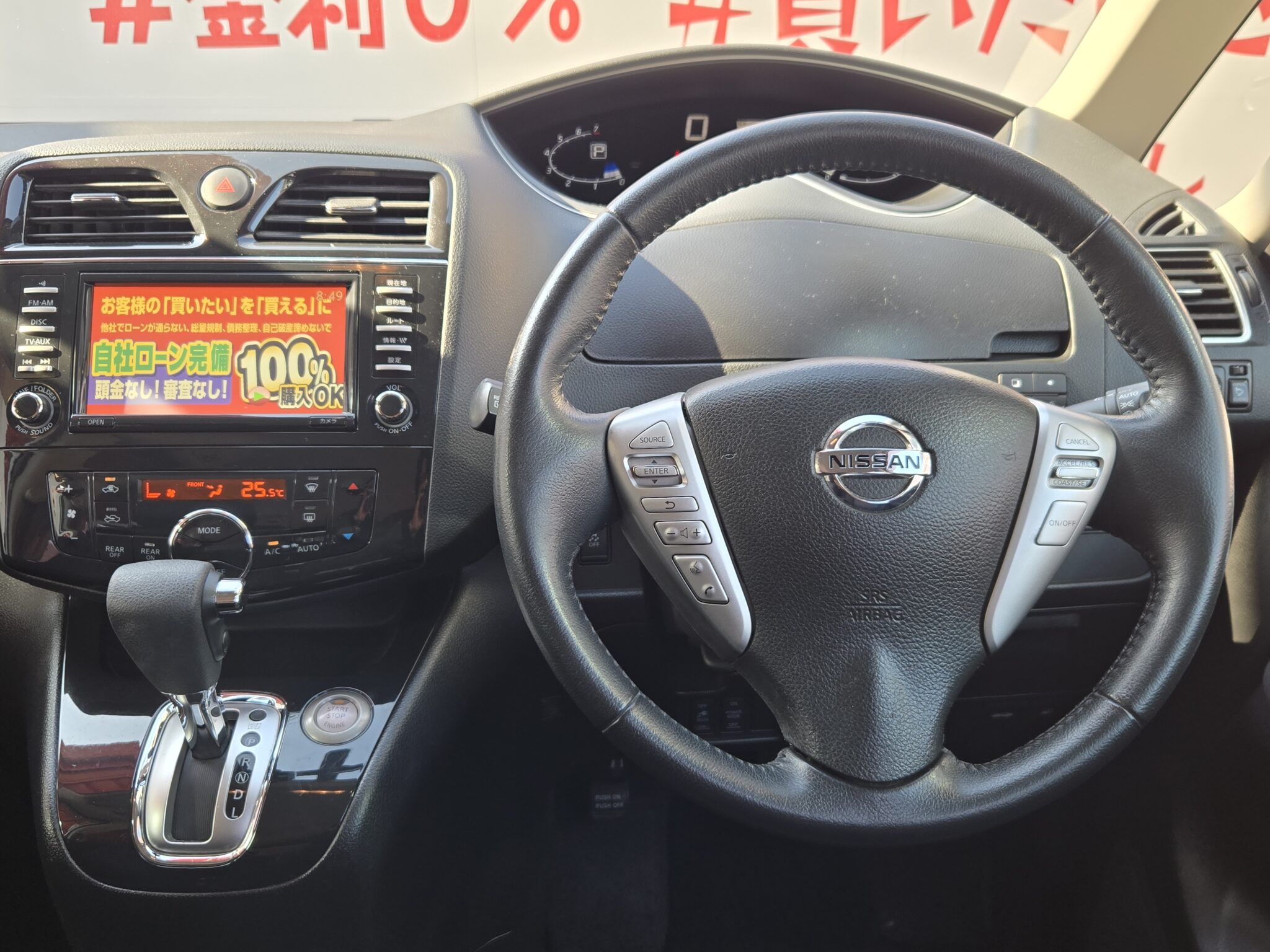 純正HDDナビ CD DVD MSV 地デジフルセグ Bluetooth ハンズフリー バックカメラ サイドカメラ フロントカメラ アラウンドビューモニター ビルトインETC 革巻ハンドル ステアリングスイッチ クルーズコントロール オートライト HIDヘッドライト フォグランプ ウィンカー付電動格納ドアミラー 両側パワースライドドア 横滑り防止装置 アイドリングストップ 100V電源 USBポート オートエアコン 3列シート ウォークスルー リアサイドシェード シートバックテーブル ドアバイザー インテリジェントキー プッシュスタート 純正16インチAW 純正オプションリアスポイラー 納車時新品タイヤ装着