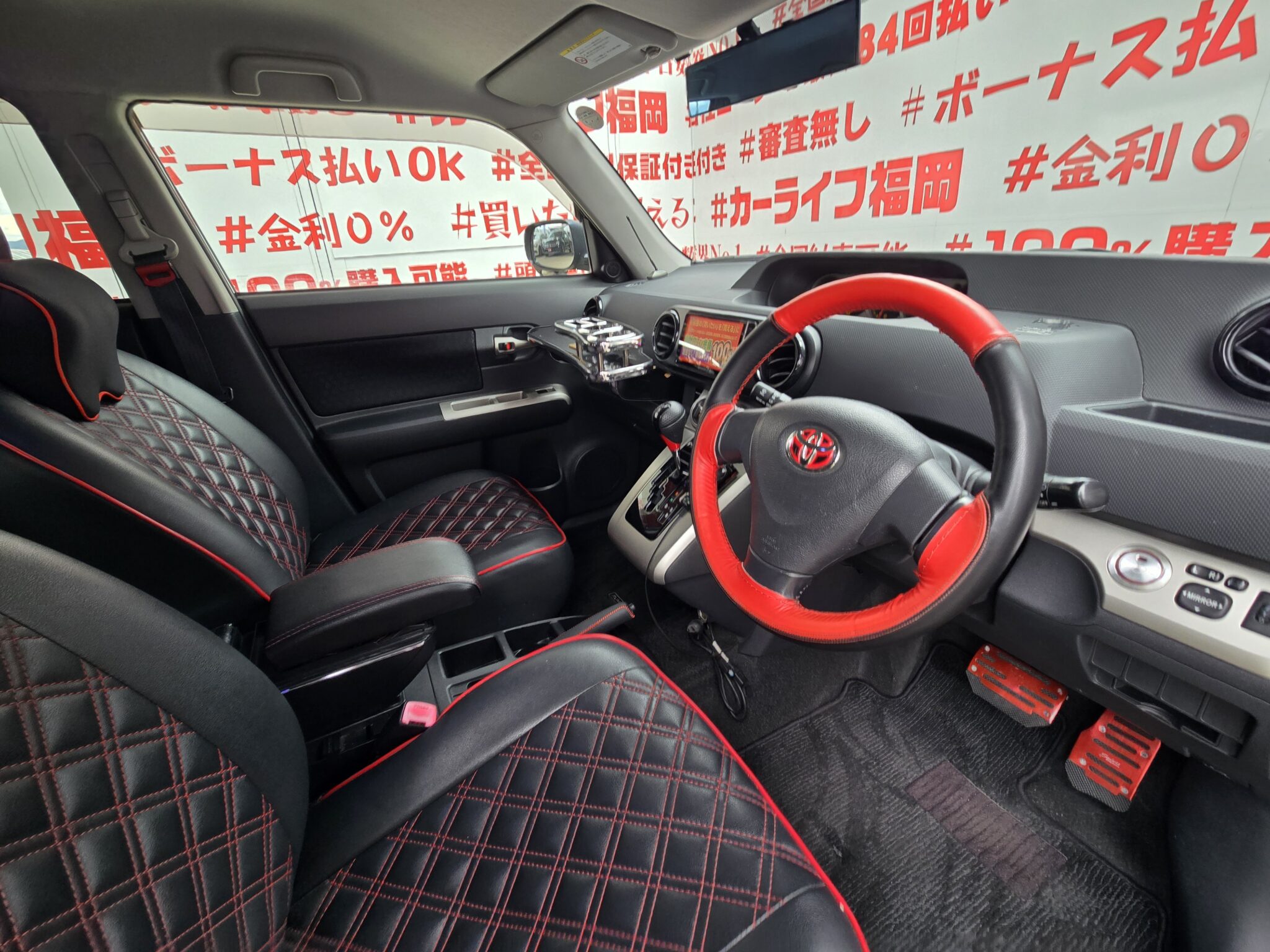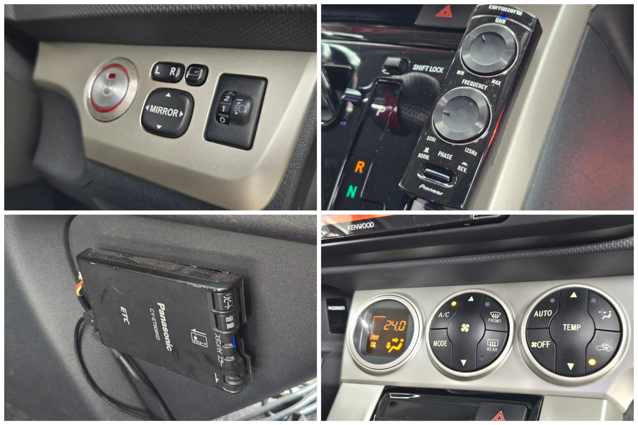 ケンウッドメモリーナビ CD DVD SD 地デジフルセグ Bluetooth ハンズフリー ETC HIDヘッドライト HIDフォグランプ ウィンカー付電動格納ドアミラー オートエアコン レザー調シートカバー 社外フロントテーブル ドアバイザー スマートキー プッシュスタート シャレン18インチAW TEIN車高調 カロッツェリアサブウーファー 純正ハーフフルエアロ 社外エンジンスターター 納車時新品タイヤ装着